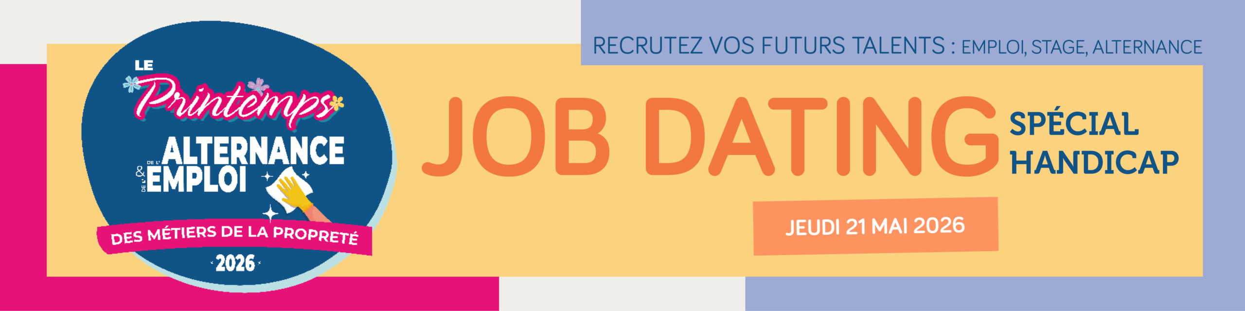 Dans le cadre du Printemps de l’Alternance et de l’emploi organisé sur l’ensemble du territoire national, le SPENRA associé aux opérateurs du Monde de la Propreté en région Rhône-Alpes vous propose deux jobs dating emploi et alternance pour vous permettre de recruter vos futurs collaborateurs.